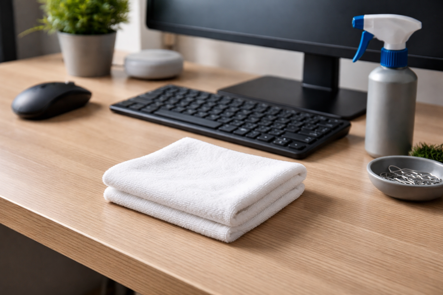 Dirginančios dulkės ant monitoriaus, atsitiktiniai arbatos lašai ir lipnios žymės ant stalo akimirksniu sugadina nuotaiką ir sumažina koncentraciją. Egzistuoja paprastas įprotis, kuris šias problemas išsprendžia per kelias sekundes ir visiškai pakeičia požiūrį į tvarkos palaikymą.