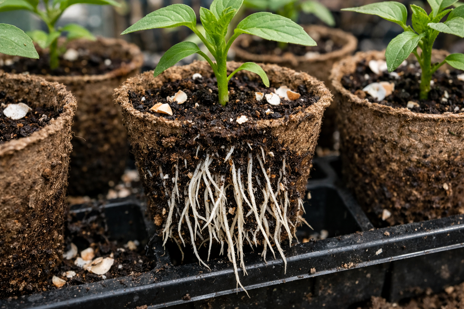 Stiprių sodinukų pamatas klojamas pirmosiomis jų augimo savaitėmis. Pagrindinis tinkamo ląstelės sienelės vystymosi elementas yra kalciokurių trūkumas lemia ūglių išgulimą ir silpną imunitetą. Pradžia infuzija iš lukšto paverčia šį mineralą į formą, kuri būtų lengvai virškinama šaknų plaukams. Šis maitinimas švelniai sumažina dirvožemio rūgštingumas puodeliuose, užkertant kelią pavojingų grybelinių infekcijų vystymuisi.