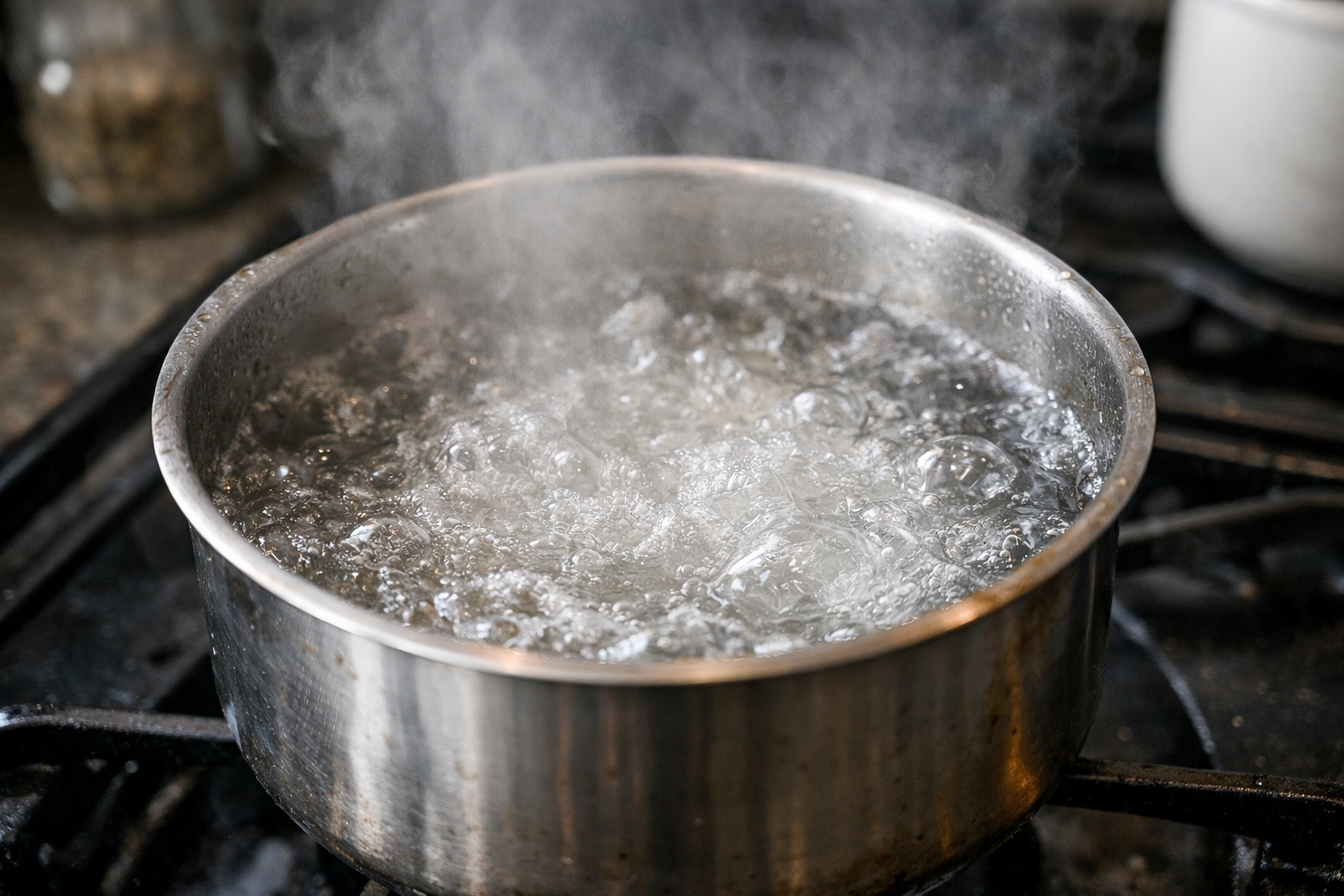 • Į platų puodą supilkite švarų vandenį. • Pridėkite galingą natūralų neutralizatorių – stalo actas. • Šį mišinį užvirinkite ant silpnos ugnies ir leiskite užvirti ant viryklės.