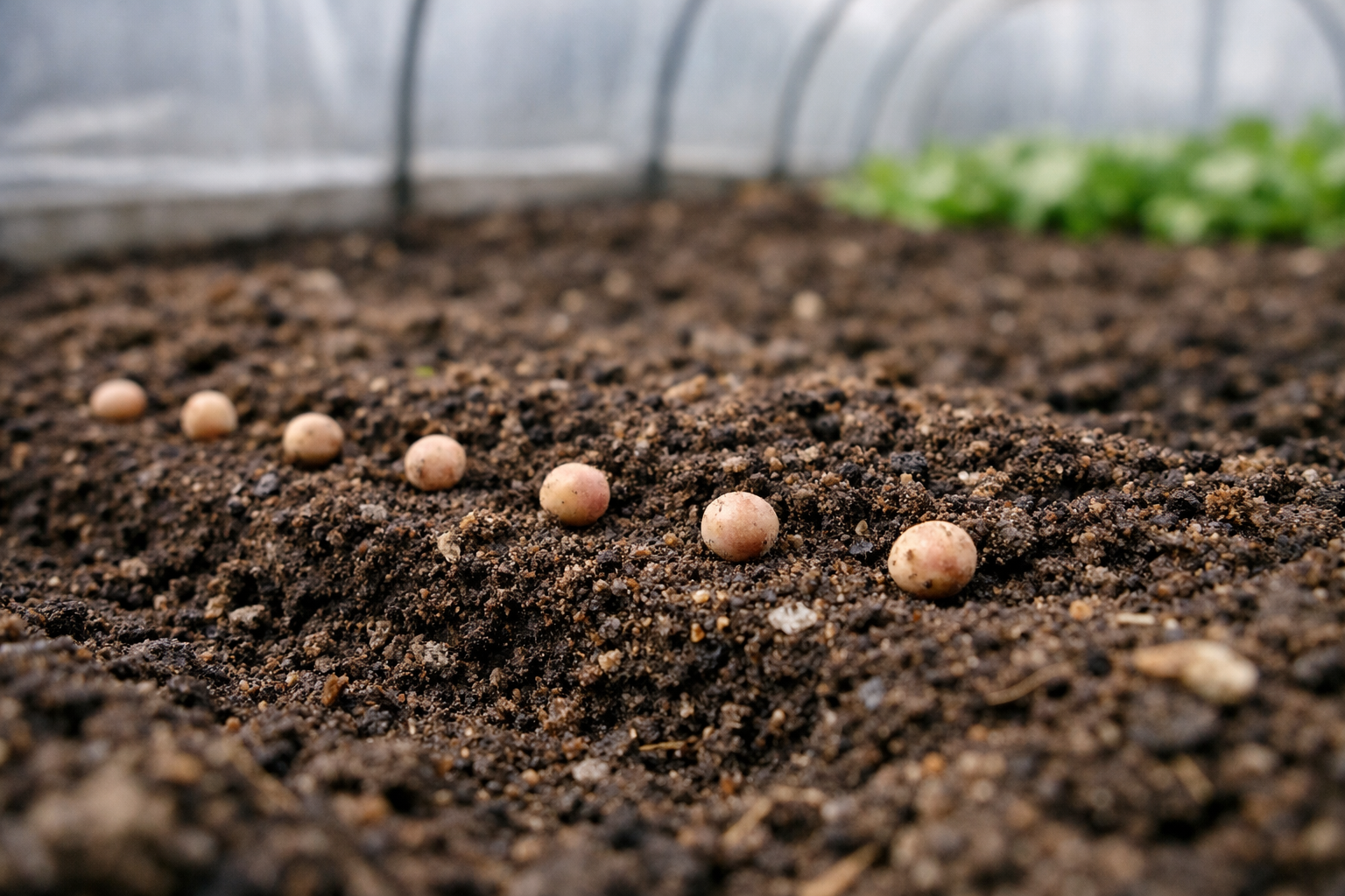Po pasodinimo delnu lengvai sutankinkite dirvą, kad sėklos ir žemės sąlytis būtų geresnis.