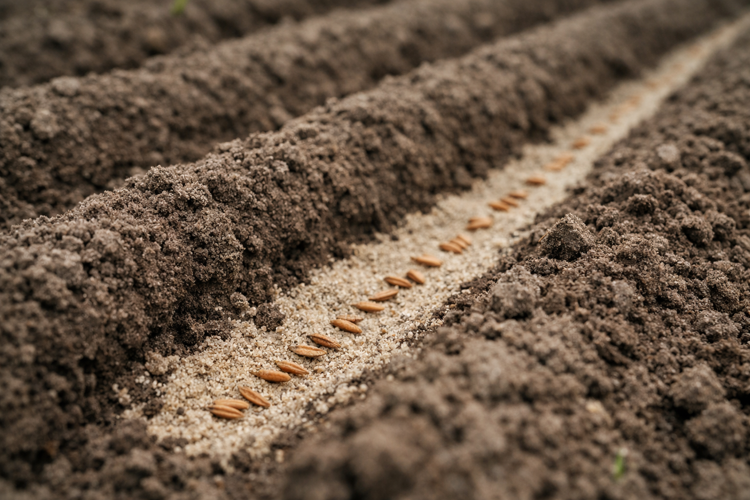• Rinkitės tik šviežias einamųjų metų sėklas, nes laikui bėgant jų daigumas sparčiai mažėja. • Iš anksto nuplaukite sėklą šiltu vandeniu, kad iš dalies pašalintumėte dygimą stabdančius eterinius aliejus. • Griežtai tame pačiame gylyje suformuokite griovelius, jų dugną sutankindami įrankio rankena.