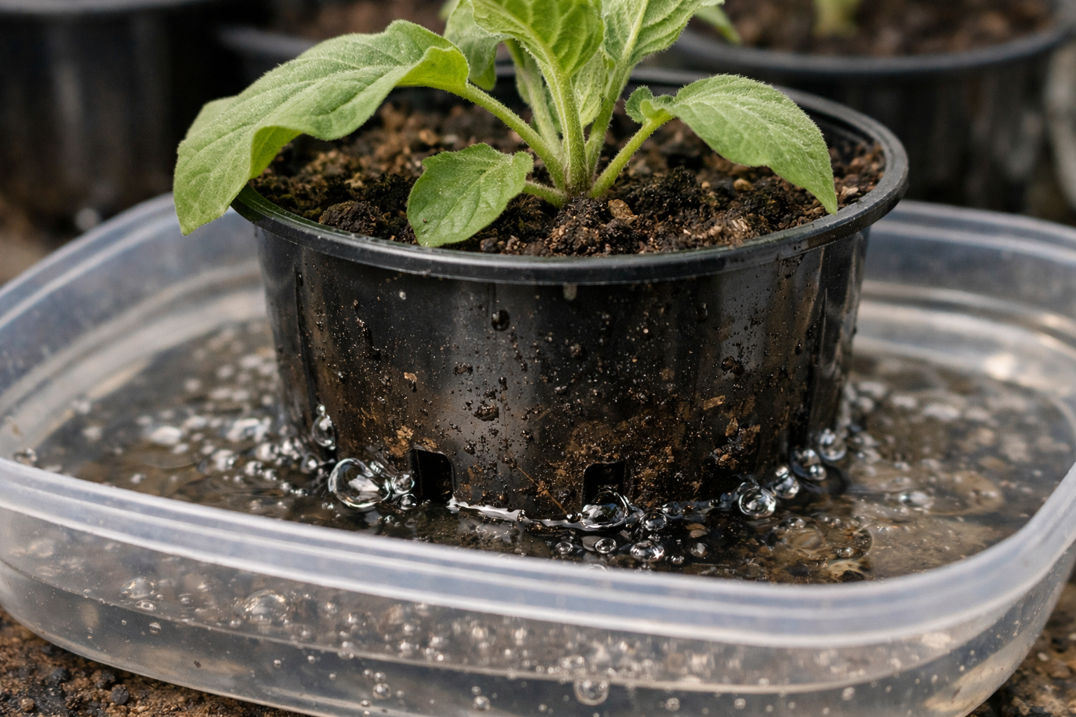 Slaptas niuansas: baklažanai fiziologiškai netoleruoja šaltų „kojų“. Jei puodelio dugnas šaltas, šaknys nustoja sugerti vandenį net iš gausiai laistytos žemės, o antžeminė dalis išdžiūsta nuo paprasto išsausėjimo.