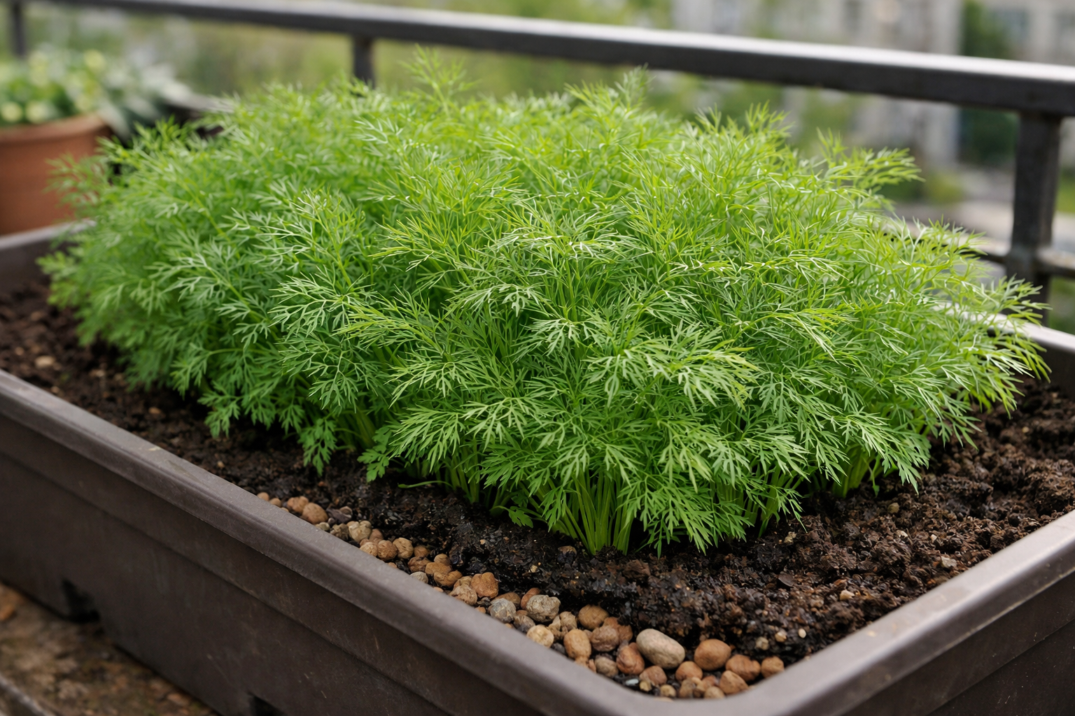 Už sėkmingą startą balkonų sodininkystė Labai svarbu pasirinkti tinkamą konteinerį. Šio prieskonio šaknų sistemai reikia pakankamai vietos, todėl mažos stiklinės visiškai netinka. Praktika rodo, kad geriausi rezultatai pasiekiami naudojant ilgas balkonų dėžes.