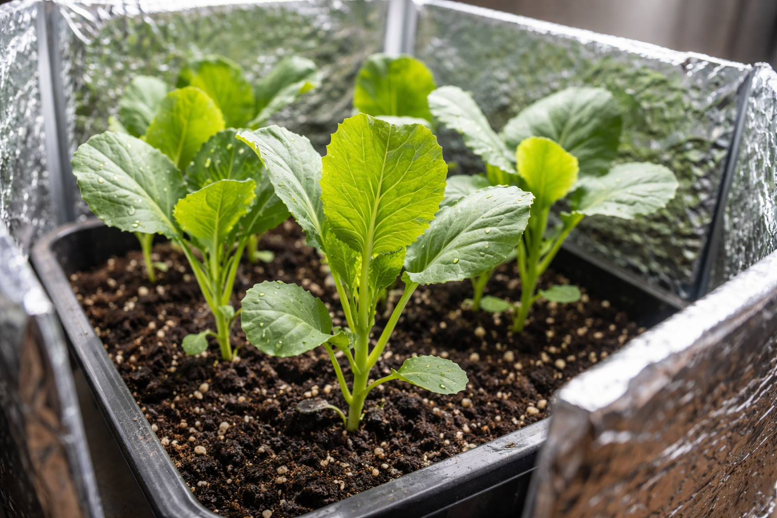 Tinkamas temperatūros ir dirvožemio drėgmės balansas kompensuos insoliacijos trūkumą ir padės augalams stiprėti. Laiku sureguliuotas mikroklimatas garantuoja stiprios šaknų sistemos formavimąsi vėlesniam sodinimui atvirame lauke.