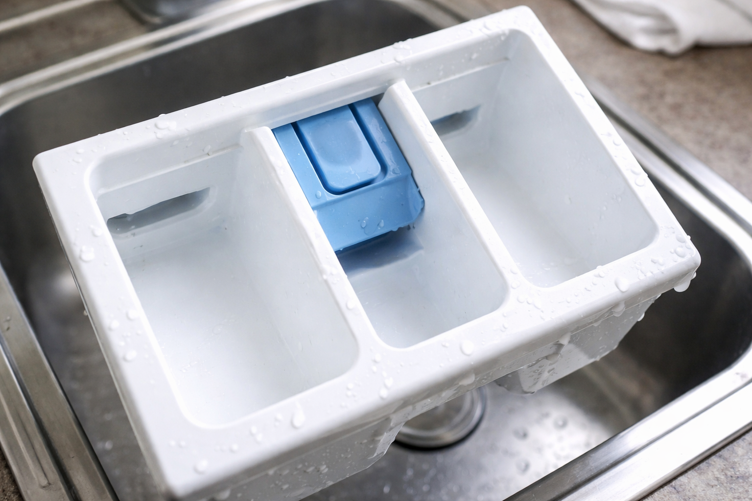 Šio įrenginio švara tiesiogiai veikia skalavimo kokybę. Kada audinių minkštiklis susimaišius su senų cheminių medžiagų likučiais, ant drabužių gali atsirasti balkšvų dėmių, kurias sunku pašalinti.