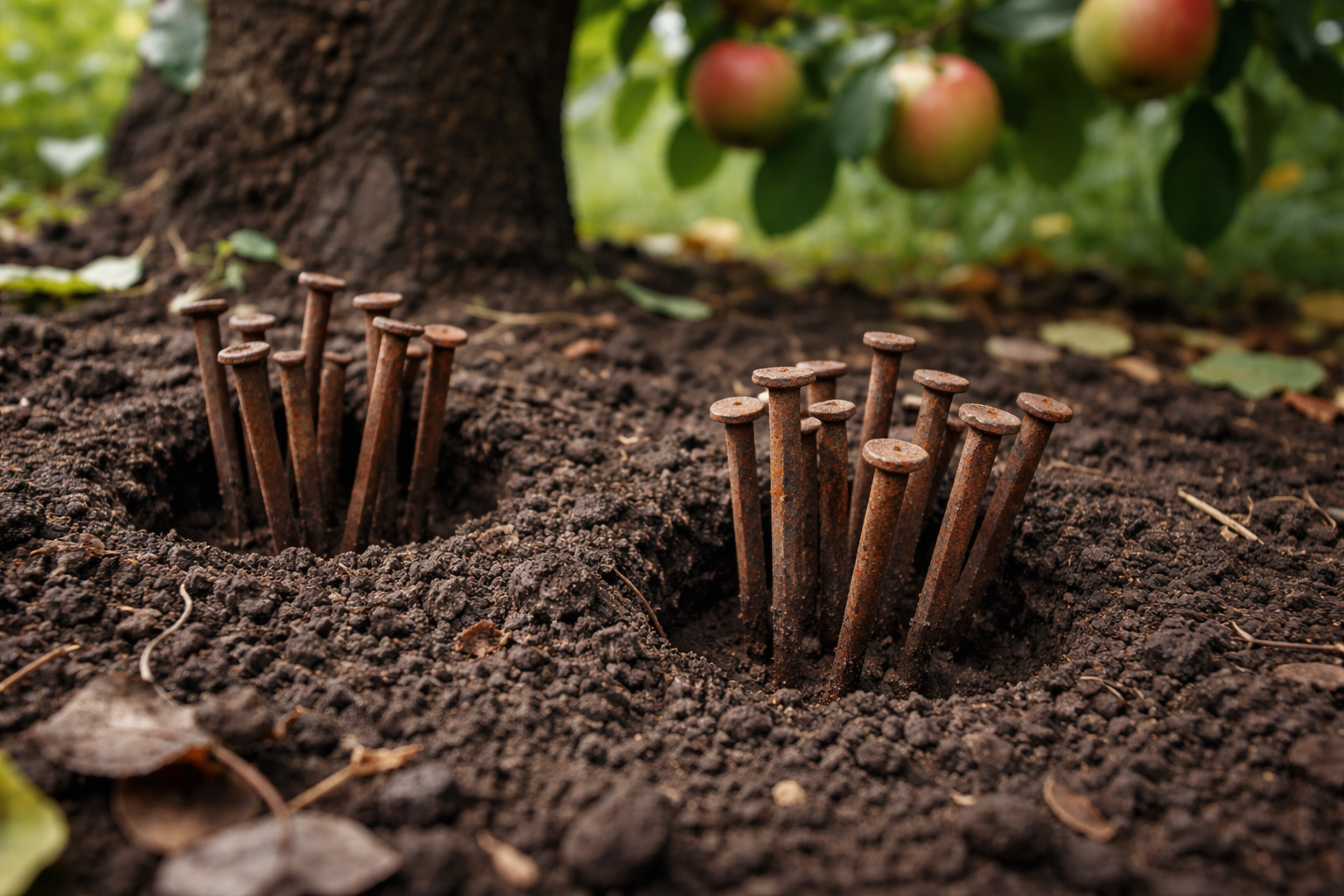 Svarbu suprasti, kad ne kiekvienas metalo gabalas bus naudingas sodui. Varis, aliuminis ar modernūs lydiniai su antikorozine danga gulės žemėje kaip savitasis svoris, nedalyvaudami reikalingose cheminėse reakcijose. Medžiui reikia būtent rūdijančios juodos geležies.