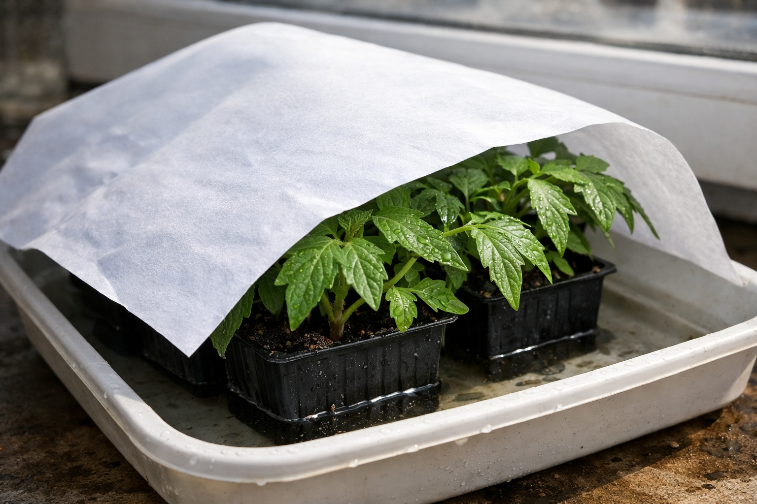 Atėjus pavasariui pomidorų daigai tampa ypač pažeidžiamas. Dėl stipraus plastikinių indų šildymo, šaknų kvėpavimas. Šaknų sistema patiria didžiulį stresą ir tiesiog neturi laiko išpumpuoti vandens iš žemės, kol įkaitę lapai jį aktyviai išgarina.