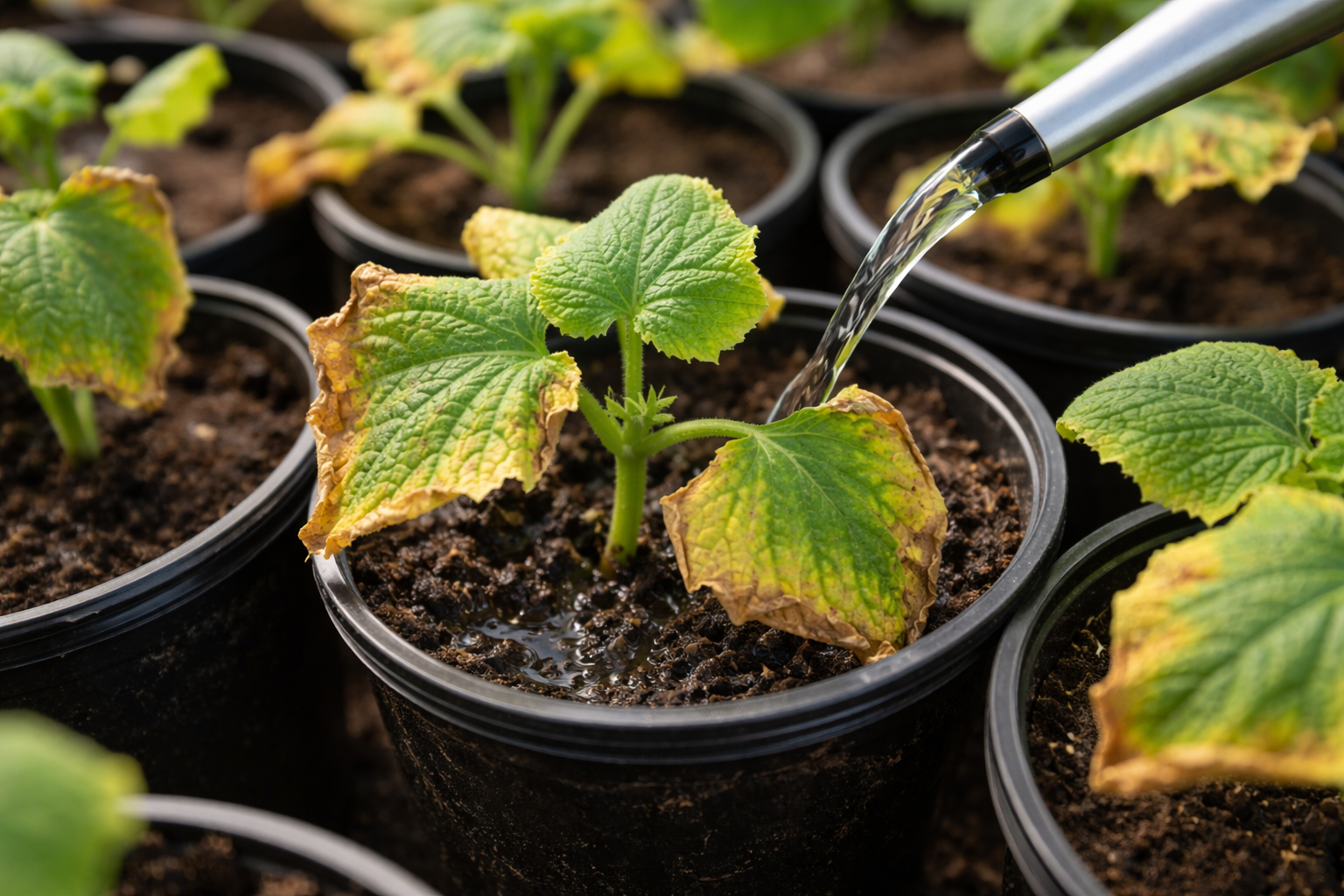 Atsargiai tręšėte trąšas dėl galingų šaknų, tačiau agurkų daigai staiga sureagavo pageltę ir išdžiovindami lapų kraštus. Ši bauginanti problema slypi ne dėl ligos, o dėl didelio mitybos užsikimšimo dėl perdozavimo, kurį galima pakeisti vos per porą dienų, paprasčiausiai pakoregavus laistymą.