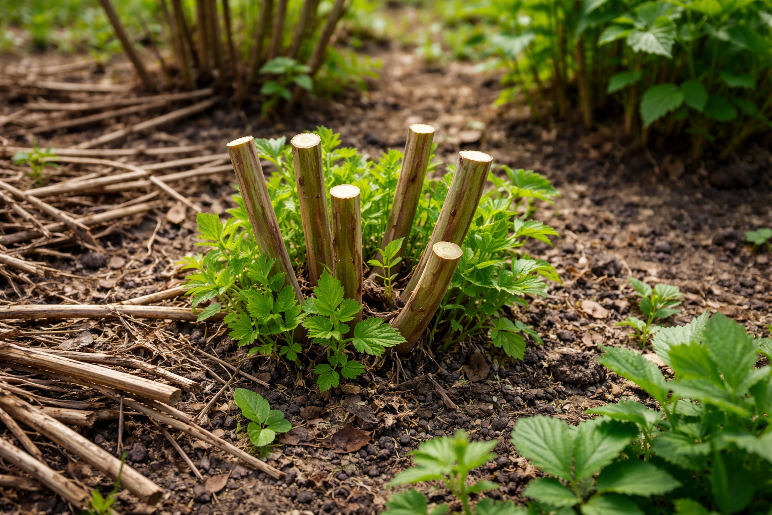 Stiprių jaunų šoninių ūglių augimo stimuliavimas