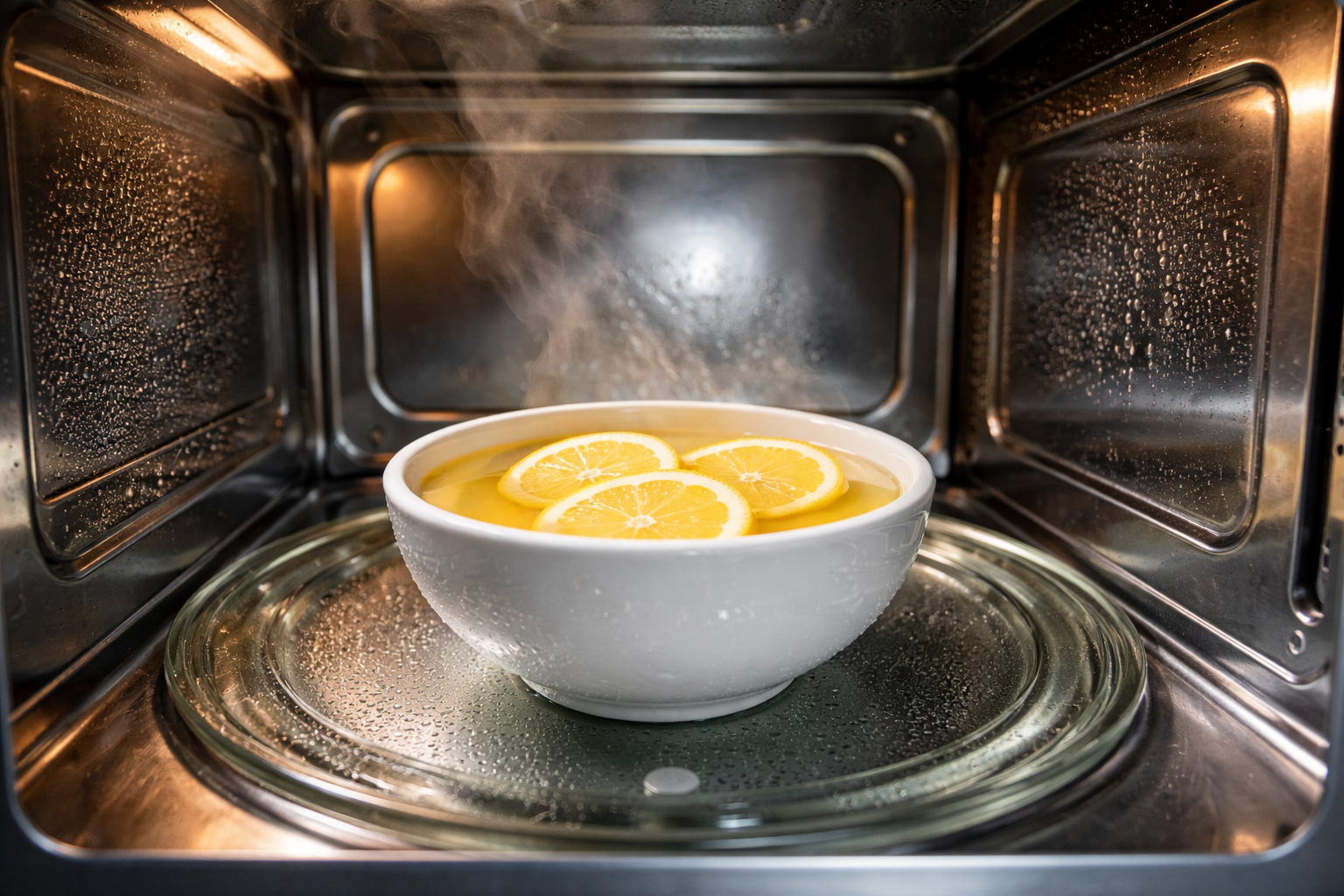 Slaptas niuansas: užvirę vandenį su vaisių griežinėliais palikite mikrobangų krosnelės dureles uždarytas dar penkioms minutėms, kad karšti garai kuo labiau suminkštintų ant sienelių išdžiūvusius riebalų lašelius.