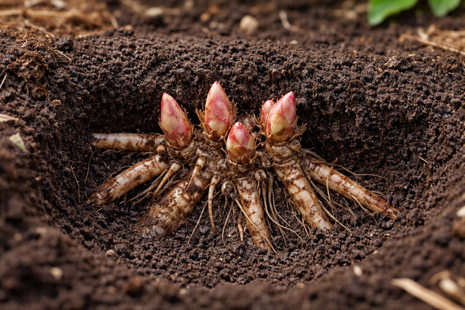 Bijūnai itin jautriai reaguoja į tai, kaip giliai jie yra paslėpti žemėje. pumpurų atnaujinimas. Tai yra dažniausia gėlių trūkumo priežastis, kurios sodininkai nepastebi. Augalas gali atrodyti visiškai sveikas, užauginti prabangią žalią masę, bet atkakliai atsisakyti formuoti pumpurus.