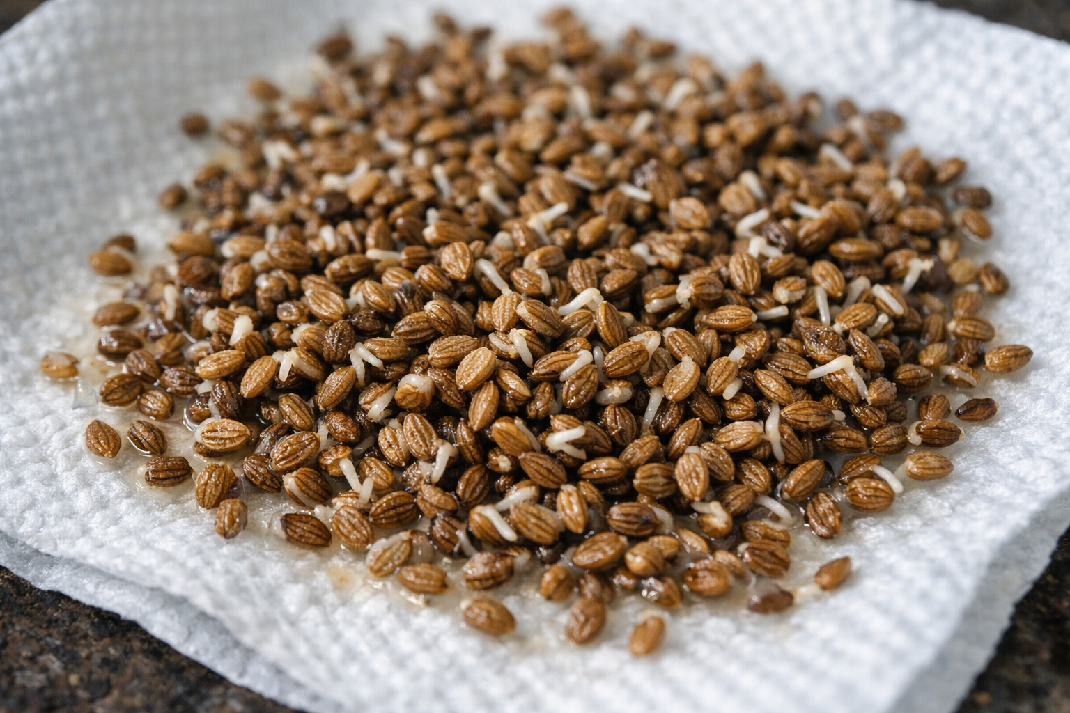 Lengvas džiovinimas ant servetėlės po vandens procedūrų atkuria sėklų takumą.