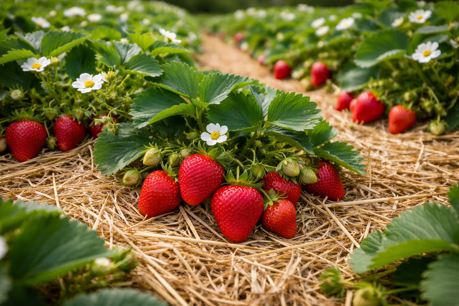 Apsauginis mulčio sluoksnis sulaiko drėgmę dirvoje ir neleidžia sunokusiems vaisiams pūti, kai liečiasi su drėgna žeme.
