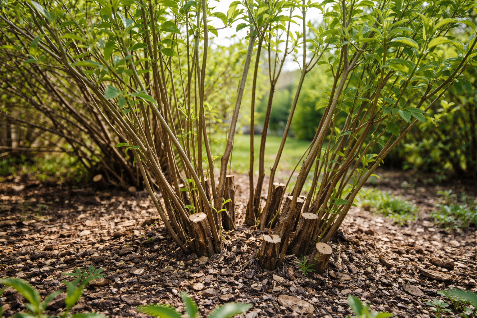 Juos reikia nupjauti beveik iki pat pagrindo, kad radikaliai atjaunintų seną krūmą.