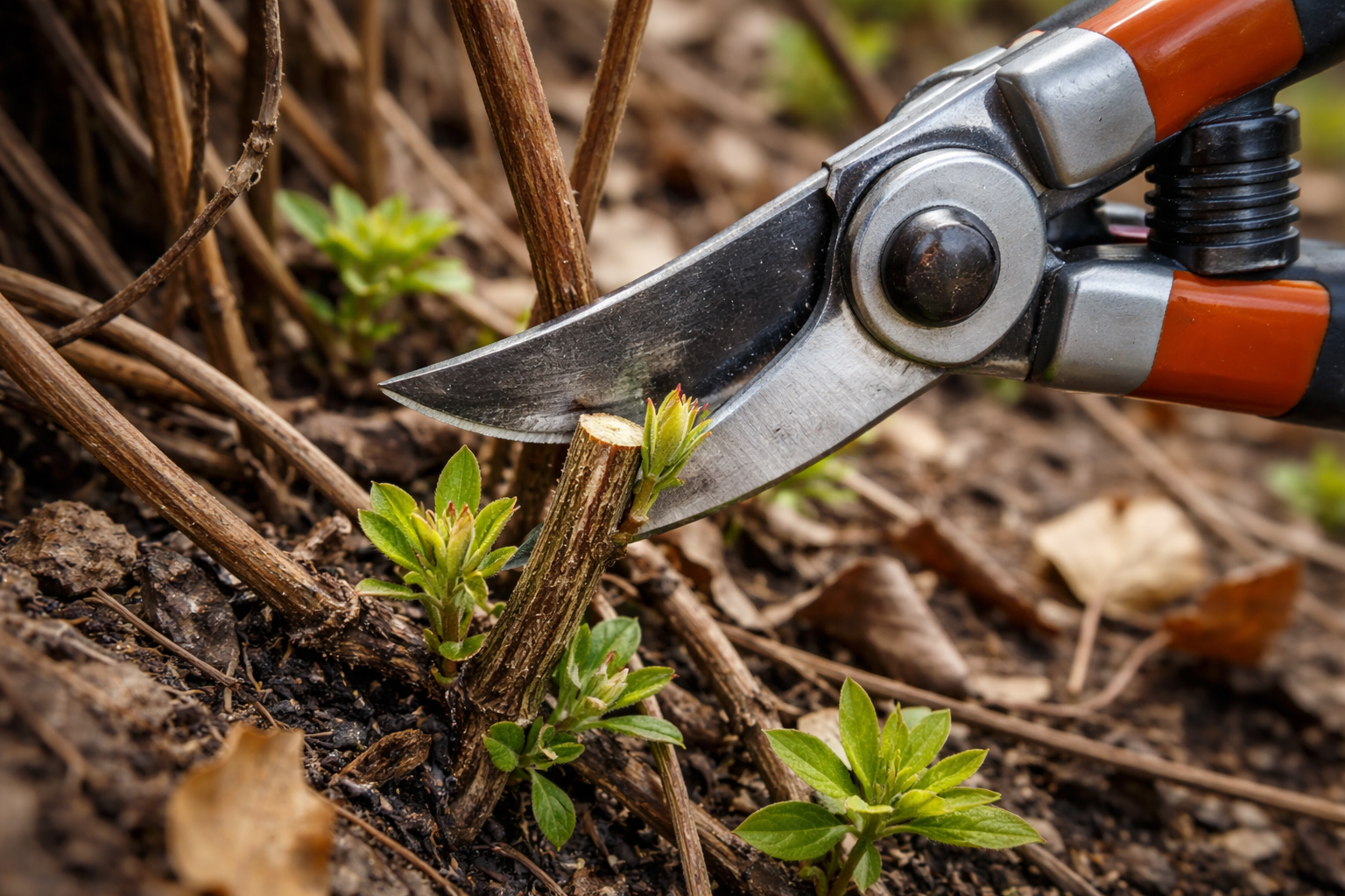 Pirmiausia pašalinkite šalčio pažeistas ir sausas stiebo dalis.
