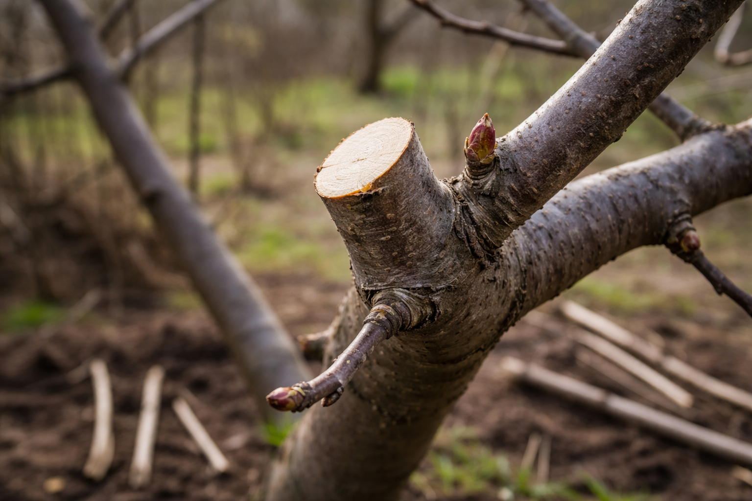 Pagrindinė paslaptis slypi vertime į šoninę šaką. Visada pjaukite virš stipraus pumpuro, nukreipto į išorę, kad stogas atsidarytų saulei ir orui. Tai skatina vaisių pumpurų formavimąsi kitam sezonui.