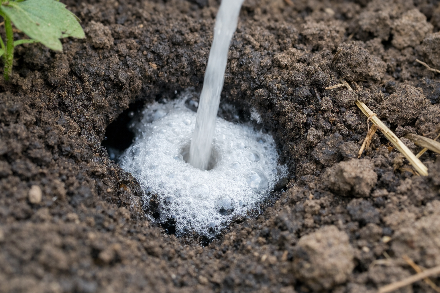Kruopščiai, tikslingai įpylus tiesiai į duobutę, auginamų augalų šaknys išlieka visiškai saugios.