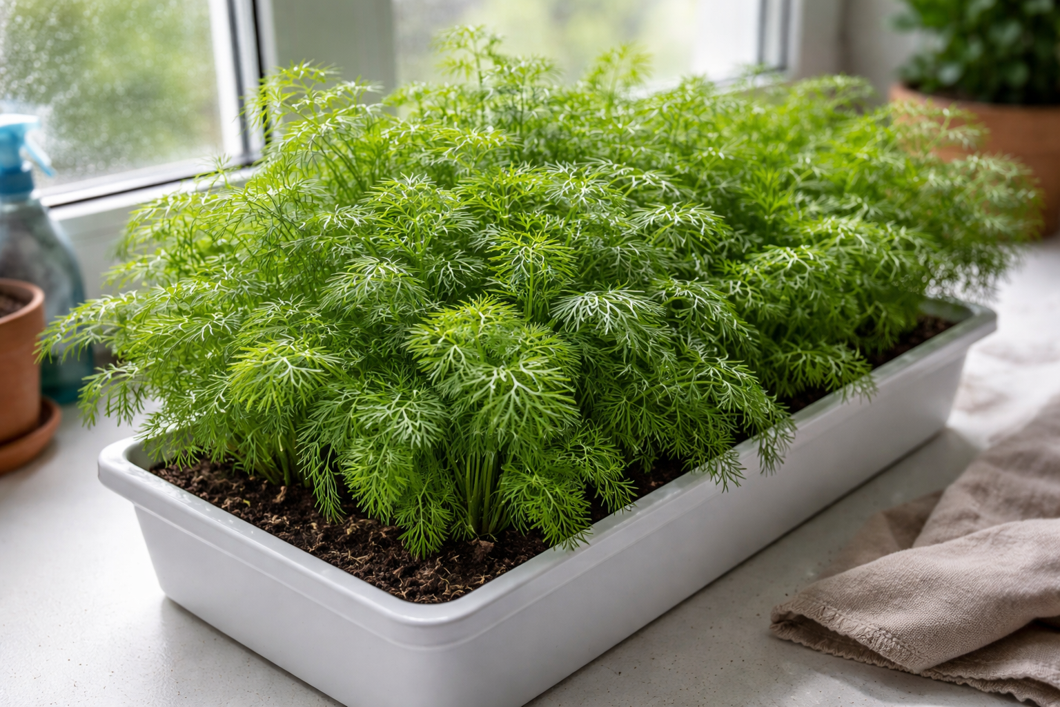 Išlaikius šią paprastą vėsos, drėgmės ir ryškios šviesos pusiausvyrą, bet kuri palangė gali tapti nuolatiniu kvapnių, traškių žalumynų šaltiniu jūsų patiekalams.