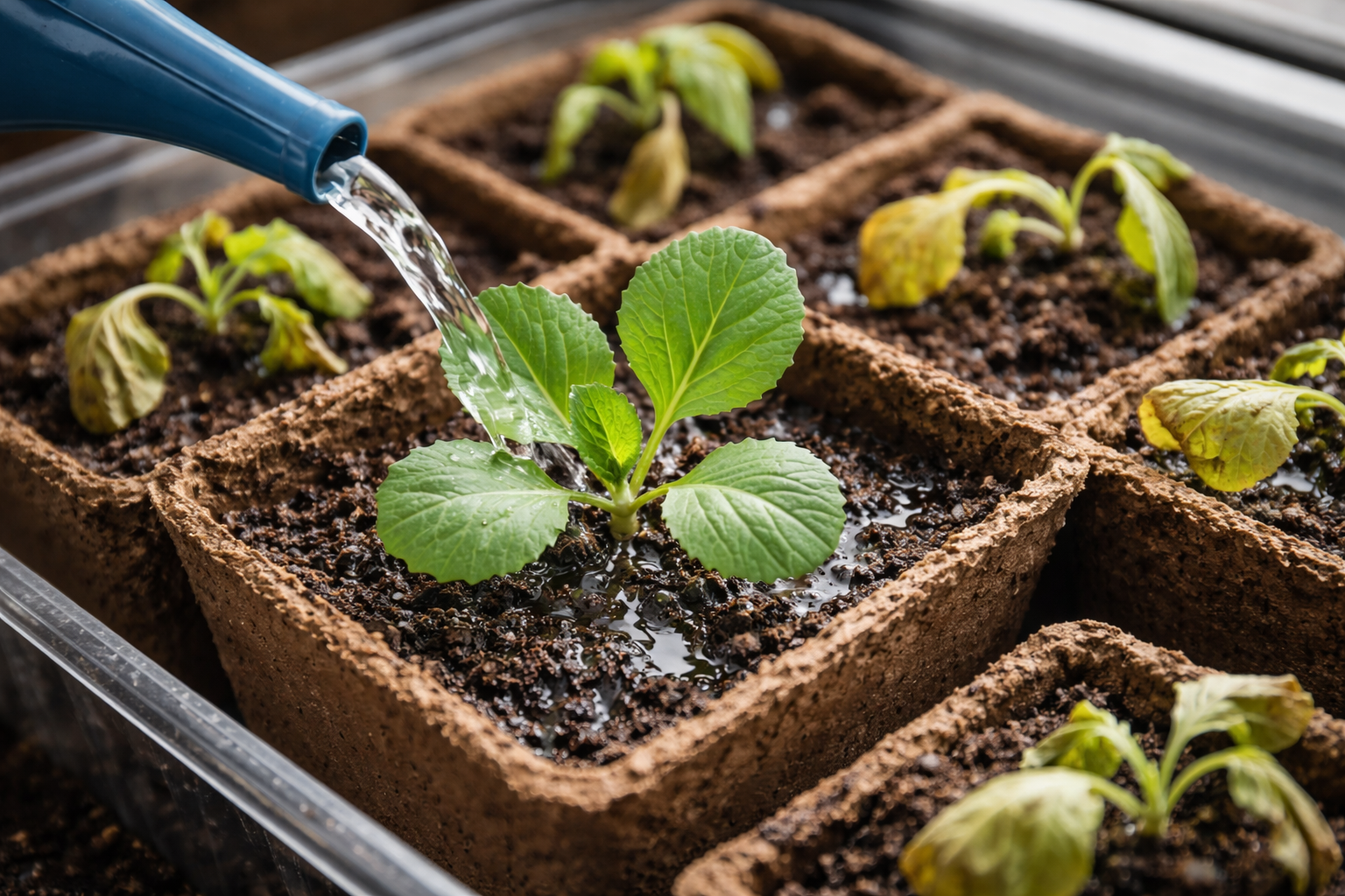Antra dažna klaida – netinkamas laistymas. Kopūstai mėgsta drėgmę, tačiau ankštuose vazonuose nesunku sukurti tikrą pelkę. Tai sukuria pavojingą drėgmės stagnacijakuris blokuoja deguonies patekimą į šaknis. Dėl to šaknų sistema dūsta, pradeda pūti, o antžeminė dalis paradoksaliai išdžiūsta nuo dehidratacijos. Taip pat vandens perteklius provokuoja pavojingų grybelinių ligų, tokių kaip juodoji kojelė.