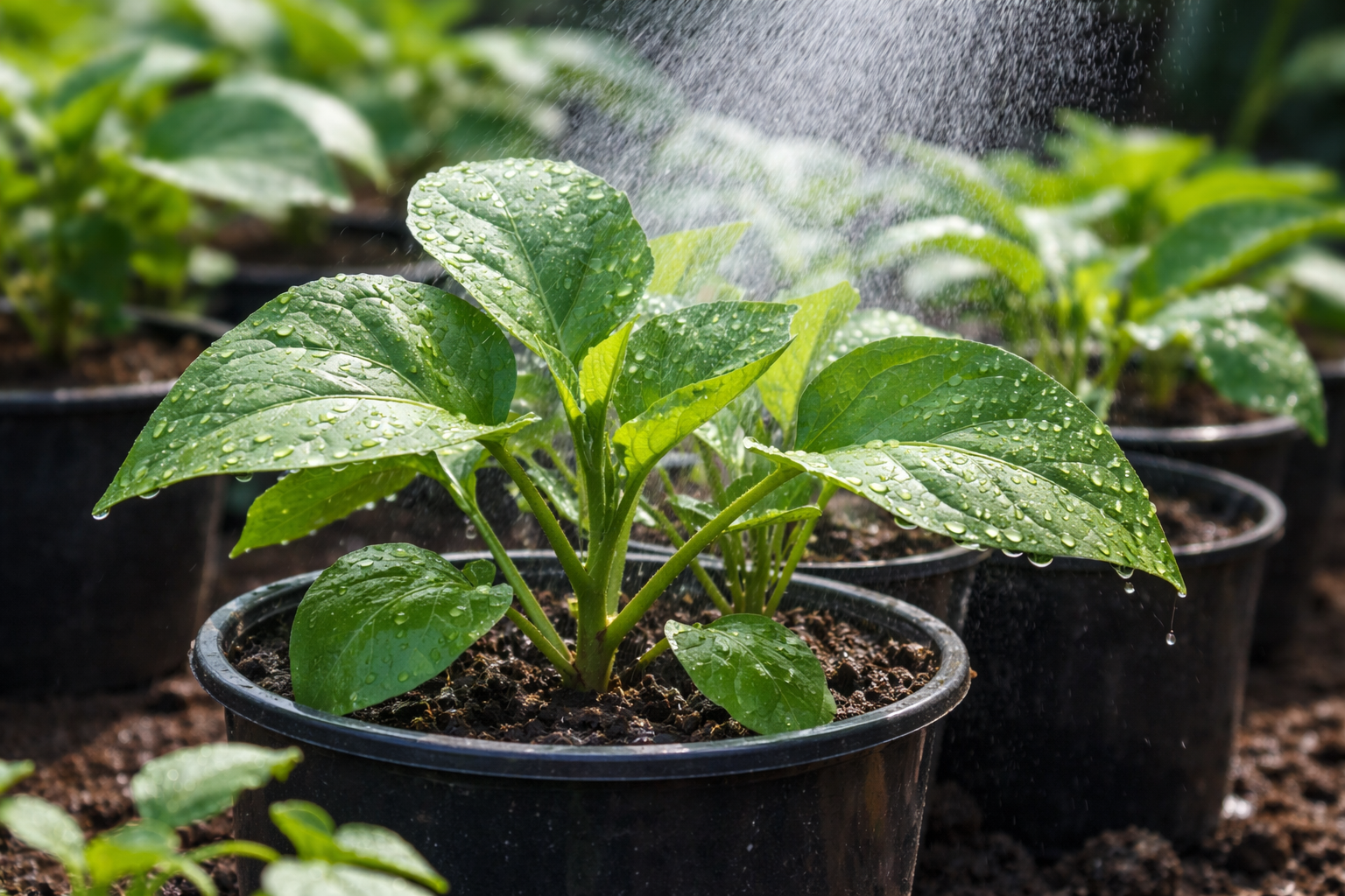 Vietinis drėgmės padidėjimas žymiai sumažina lapijos apkrovą, kuri liečiasi su tiesioginiais spinduliais, ir neleidžia prarasti elastingumo.