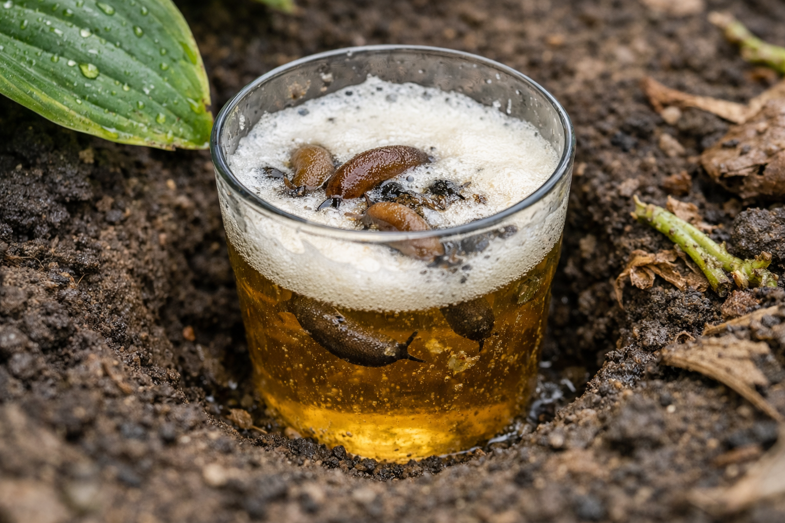 Stiklinė turi būti užpildyta maždaug puse arba dviem trečdaliais. Kvapo privilioti šliužai lipa į vidų ir nebegali išlipti.