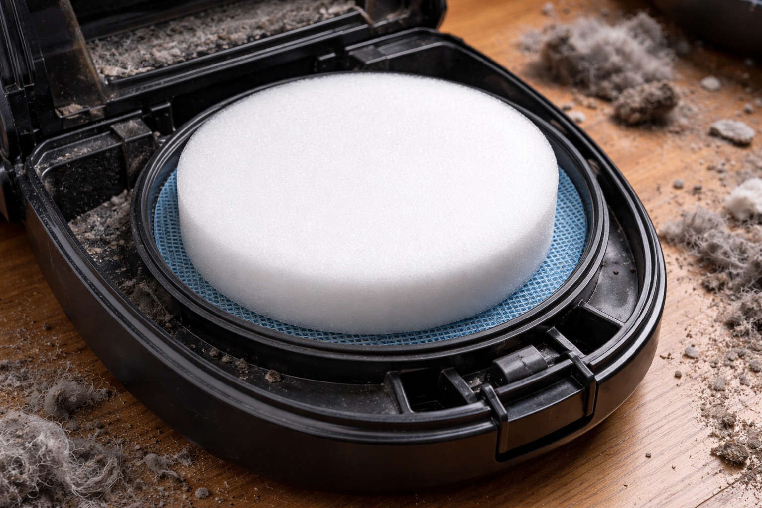 Pagrindinė klaida atliekant techninę priežiūrą – šlapio putplasčio dėjimas atgal į plastikinį dėklą. Būtinai džiovinkite bent parą kambario temperatūroje, antraip viduje greitai susiformuos pelėsis, nuo tiesioginės drėgmės perdegs elektros variklis.