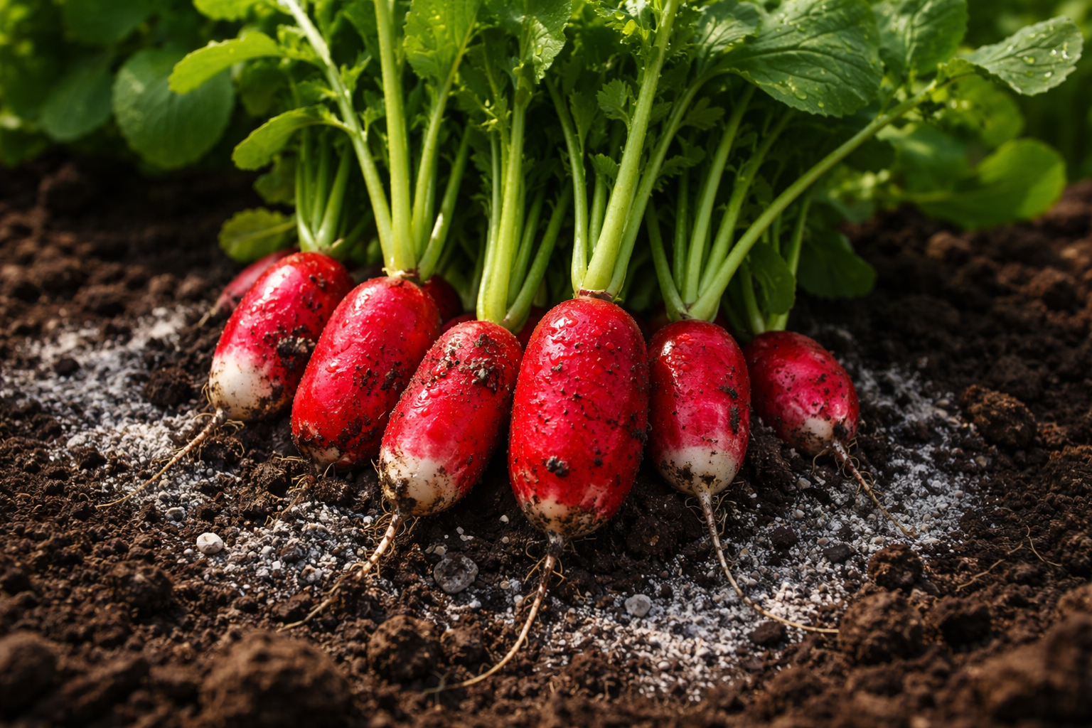 Ypatingą dėmesį atkreipkite į vandenį. Ridikėliai yra 90% drėgmės. Jei žemė išdžius nors pusę paros, oda taps šiurkšti, augimas sustos. naudoju mulčiavimas plonas nupjautos žolės ar šieno sluoksnis – tai sulaiko drėgmę ir neleidžia žemei perkaisti po pavasario saule.
