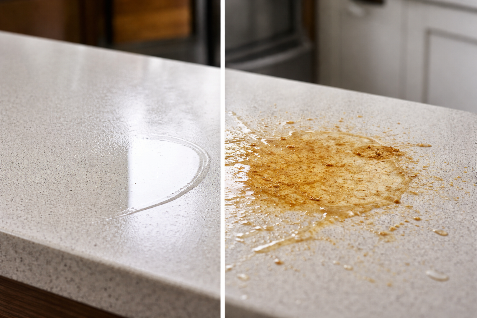 Tobulos švaros paslaptis slypi ne galingose cheminėse formulėse, o tinkamu laiku. Kai kokia nors skysta medžiaga patenka į stalviršį ar grindis, prasideda neišvengiamas fizinis procesas. Pirma atsitinka kapiliarinis poveikisdėl ko drėgmė aktyviai prasiskverbia į akiai nematomas medžiagos mikroporas.