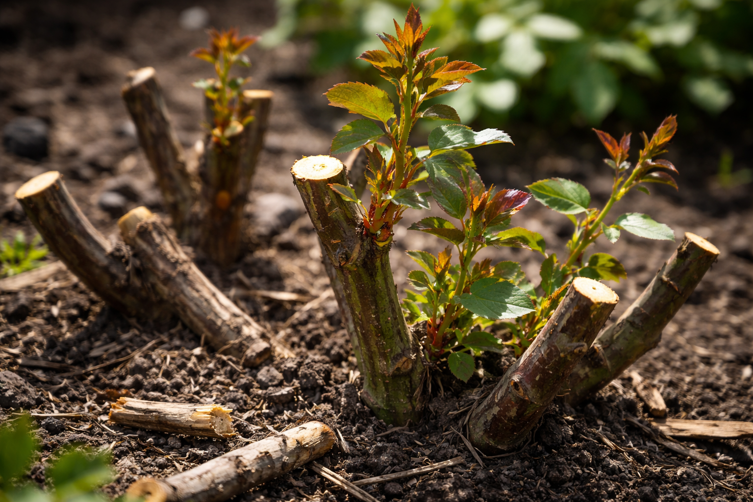 Svarbus žingsnis yra kova su laukinis augimas. Jei jūsų rožė yra skiepyta, po skiepijimo vieta gali pasirodyti ploni ūgliai su mažais lapais. Negalite jų nupjauti tik dirvos lygyje – reikia iškasti žemę ir išlaužti prie pat šaknų, kitaip jie greitai atims iš veislės visas jėgas.