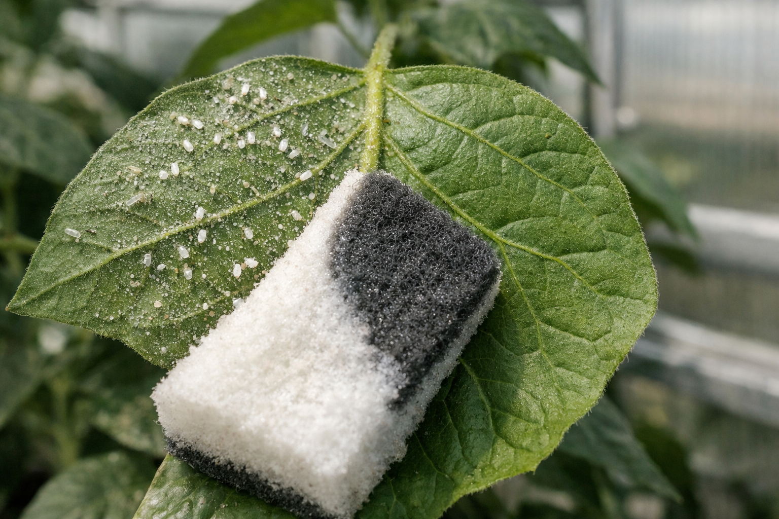 Būtinai patikrinkite apatinę lapo pusę, nes ten jie slepiasi baltasparnių kiaušiniųkurios yra visiškai atsparios daugeliui paviršiaus purškimų.