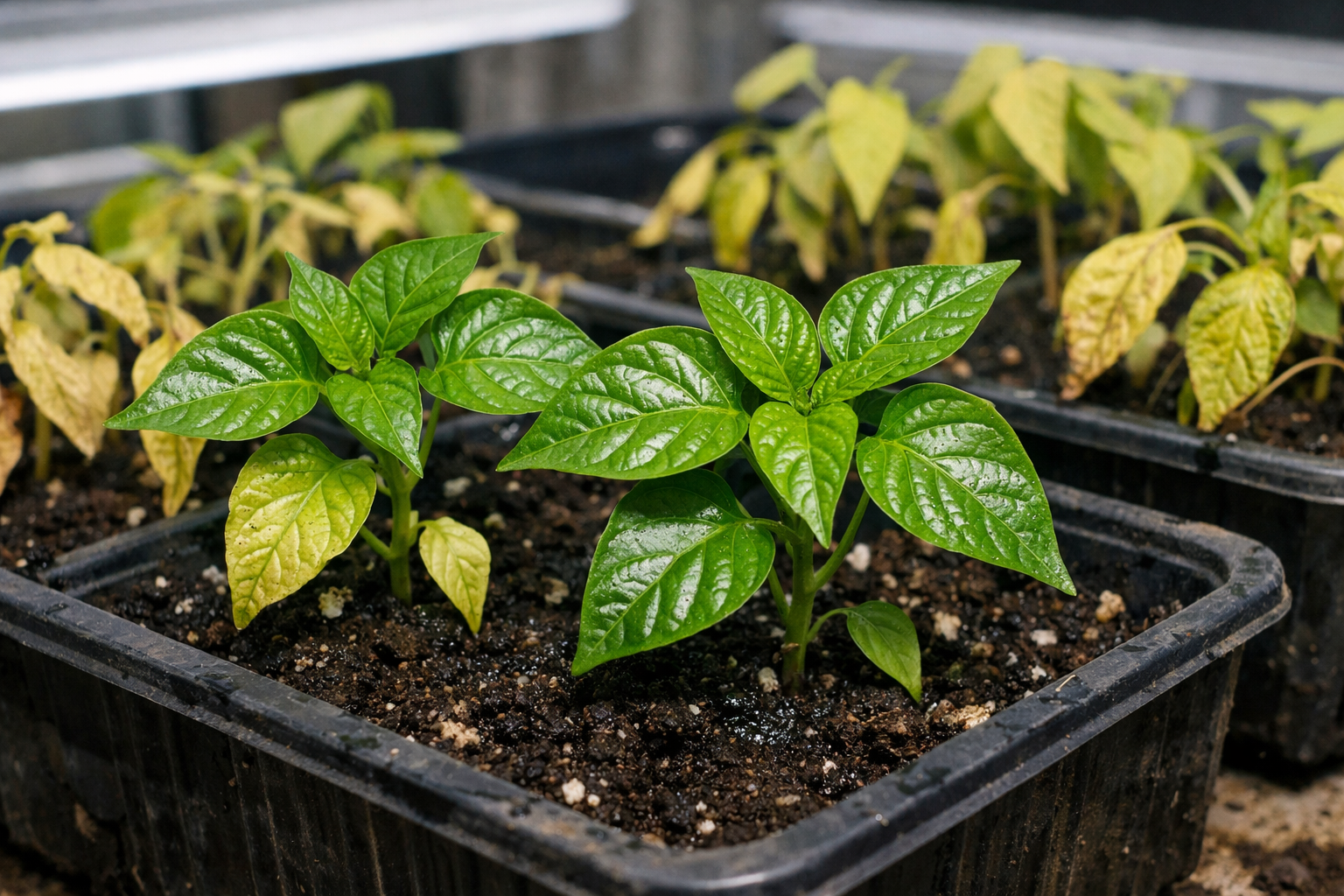 Pirmoji blyškių sodinukų gaivinimo taisyklė – stabilizuoti mikroklimatą. Daugelis sodininkų daro klaidą, bandydami gelstančias paprikas „maitinti“ azoto trąšomis. Be šviesos šaknų sistema tiesiog nesugeba įsisavinti šių elementų, o tai veda prie dirvožemio įdruskėjimo.