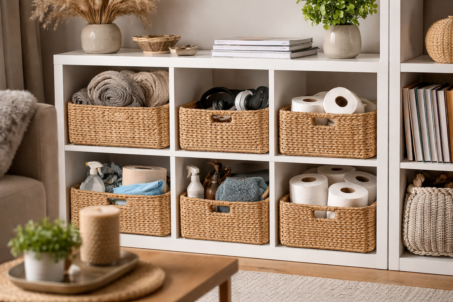 Įsigykite gražų interjero krepšelį tokioms smulkmenoms ir kartą per savaitę sutvarkykite jo turinį.
