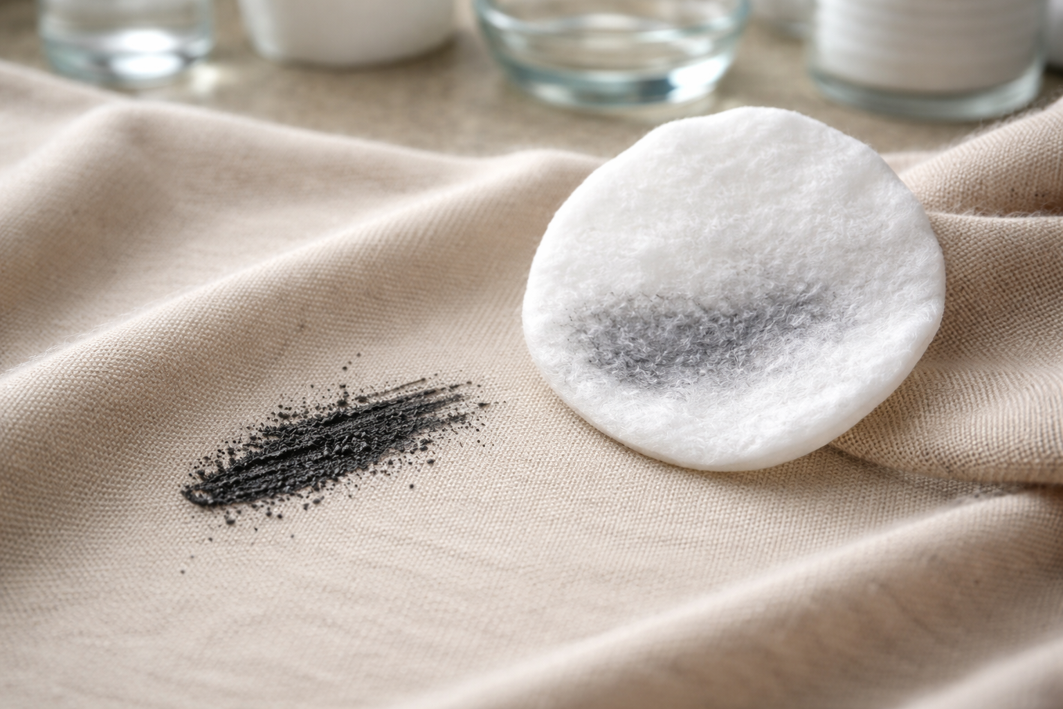 Svarbi paslaptis: niekada netrinkite šviežios makiažo dėmės sukamaisiais judesiais, kitaip pigmentą įterpsite tik giliau į pluošto struktūrą. Visi judesiai turi būti griežtai nuvalomi, nuo užteršimo kraštų iki jo centro.