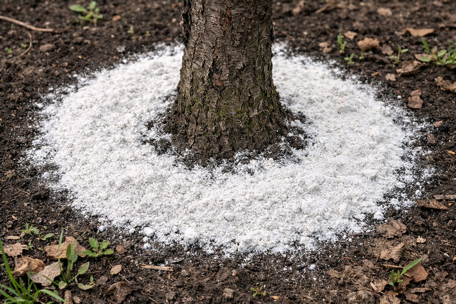 Medžiaga veiks daug efektyviau, jei ji bus bent šiek tiek įterpta į viršutinį dirvožemio sluoksnį aplink medžio kamieną.