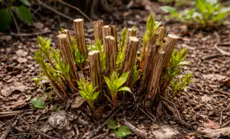 Pašalinkite praėjusių metų organines medžiagas nuo šaknų, kad išvengtumėte puvimo.