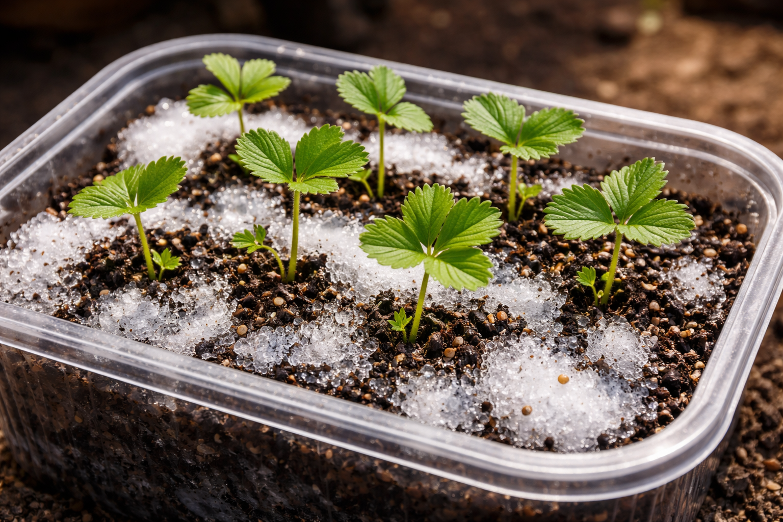 Pagrindinė draugiškų sodinukų paslaptis slypi tirpstančiame sniege, kuris lėtai ir tolygiai sutraukia sėklas į reikiamą gylį, nerizikuojant, kad jos bus palaidotos.