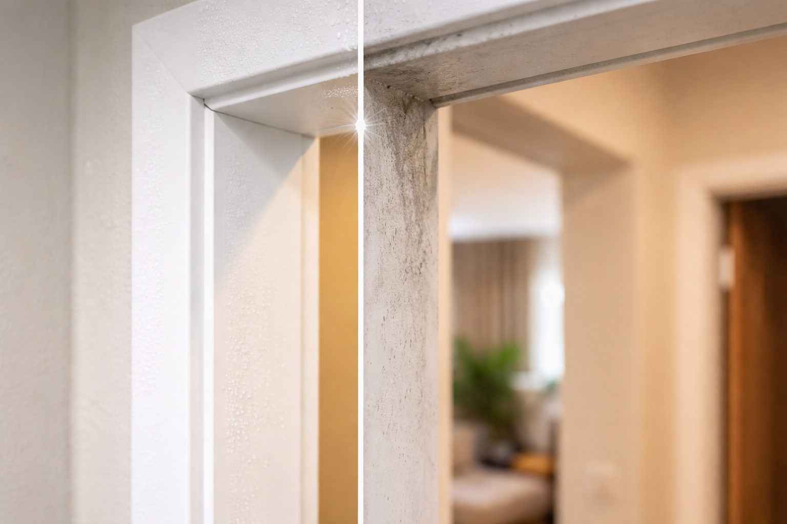 Durų staktos valymo metu išlieka nepastebimiausia vieta, nors būtent jos surenka daugiausia dulkių ir odos riebalų nuo nuolatinio prisilietimo rankomis. Jei prieškambaryje pastebite keistą pelėsio kvapą ar tamsius dryžius ant šviesios medienos, problema slypi pamirštuose rėmuose. Parodysiu, kaip vienas paprastas namų sprendimas per porą minučių sugrąžins duris į pradinę išvaizdą ir sukurs galingą antistatinį barjerą nuo naujų nešvarumų.