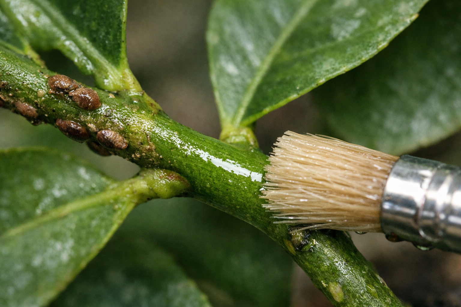 • Išskirkite užkrėstą citriną nuo kitų augalų. • Paruoškite stipraus alkoholio arba degtinės tirpalą ir minkštą šepetį. • Švelniai nuvalykite kiekvieną šaką, atkreipkite dėmesį į tai, kur prisitvirtina lapai. • Norėdami fiziškai valytis, naudokite seną dantų šepetėlį kriauklės vabzdžių