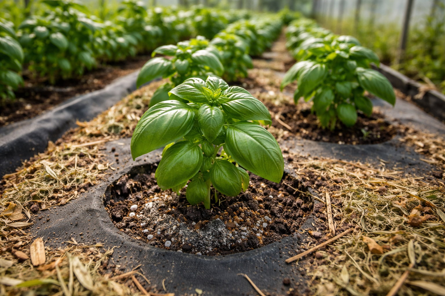 Naudokite ploną organinio mulčio sluoksnį, kad išlaikytumėte drėgmę prie šaknų