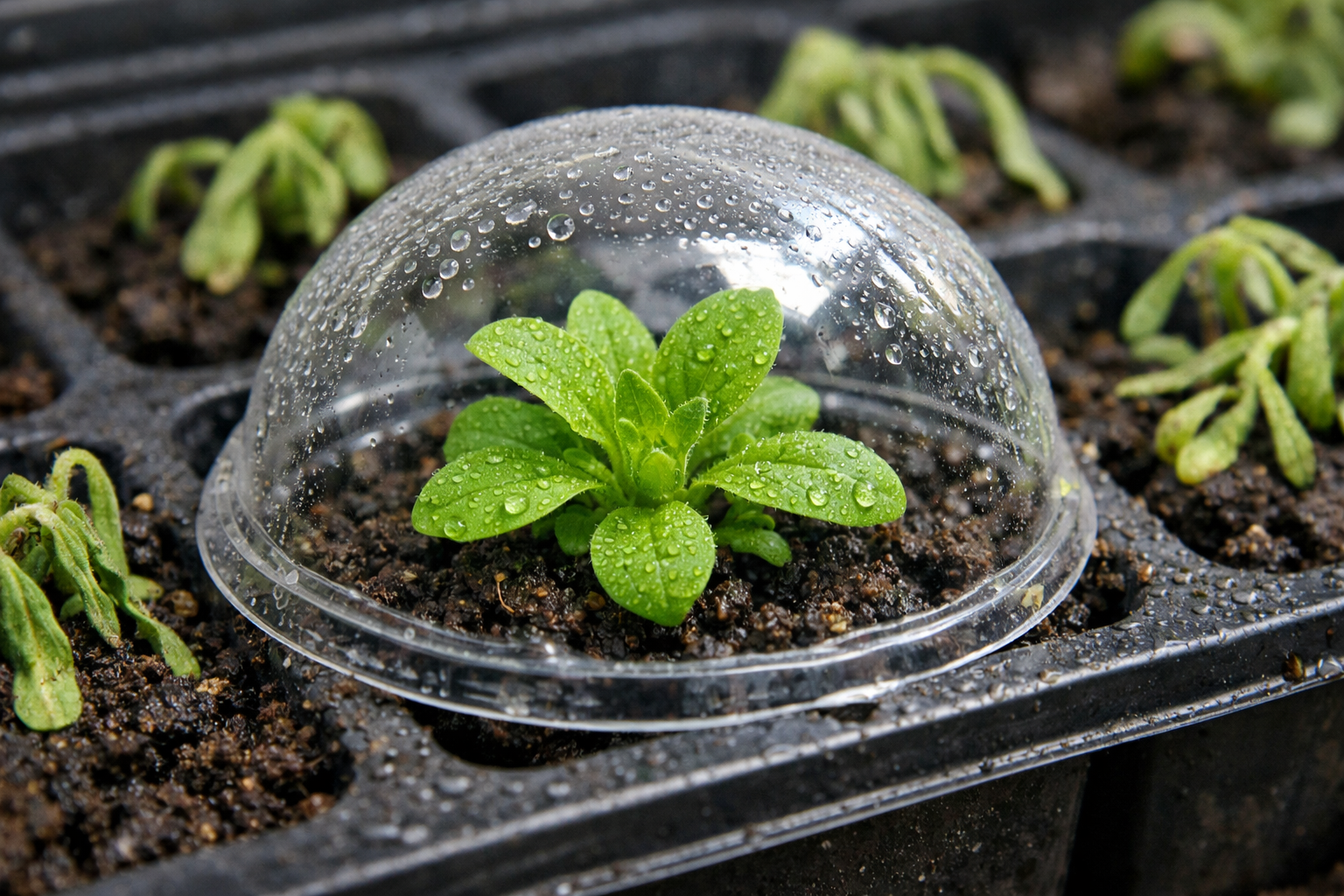 Jau po kelių valandų pabuvus po tokia skaidria kepure, lapai vėl taps elastingi. Mini šiltnamį svarbu vėdinti kasdien, kelioms minutėms nuimant dangą, kad nesusidarytų pelėsis.