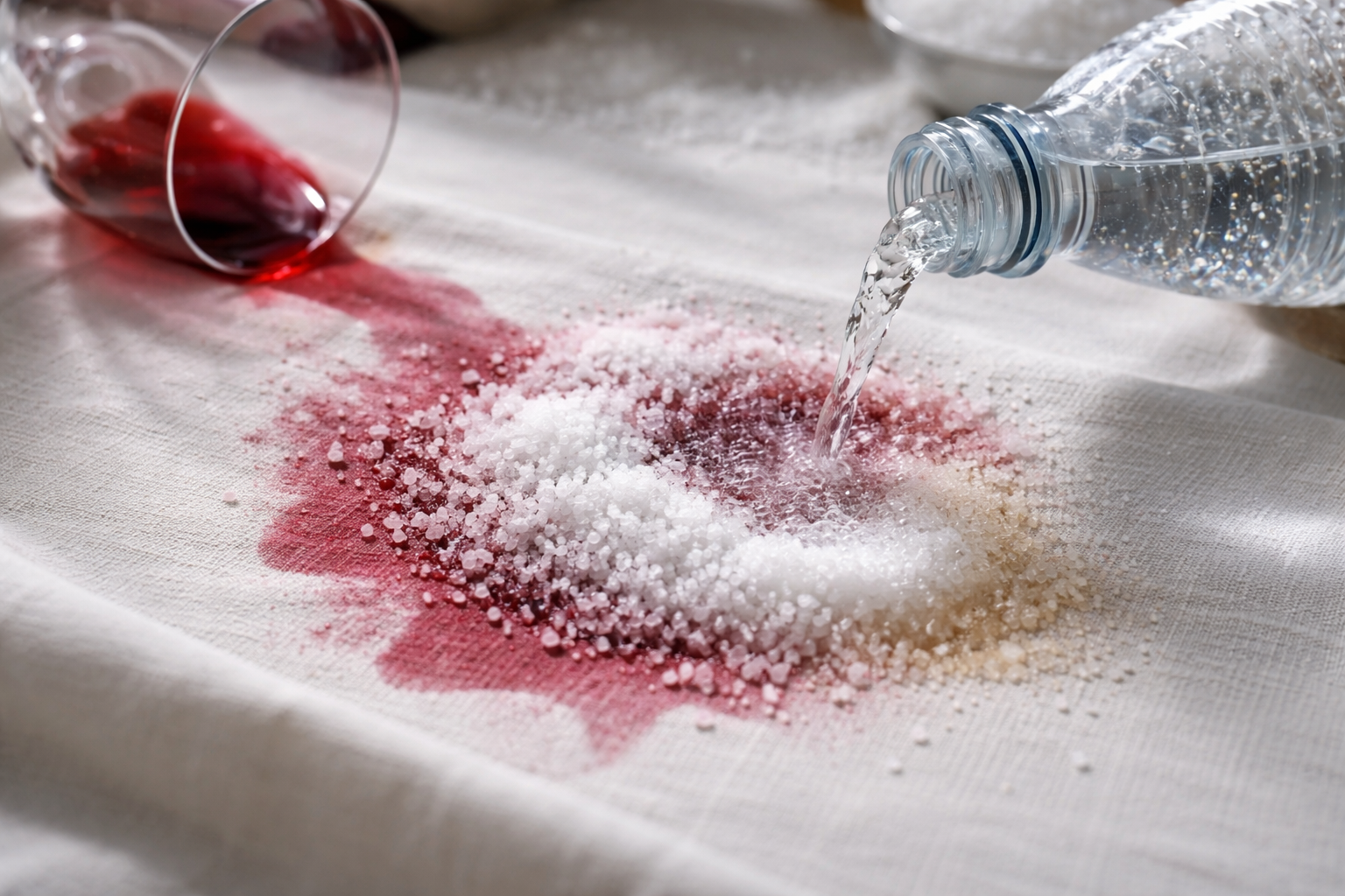 Pagrindinis slaptas niuansas: niekada netrinkite šviežios vyno dėmės. Trintis tik įstumia pigmentą giliau į siūlų struktūrą. Tiesiog švelniai nuvalykite skystį tirštu popierinis rankšluostis.
