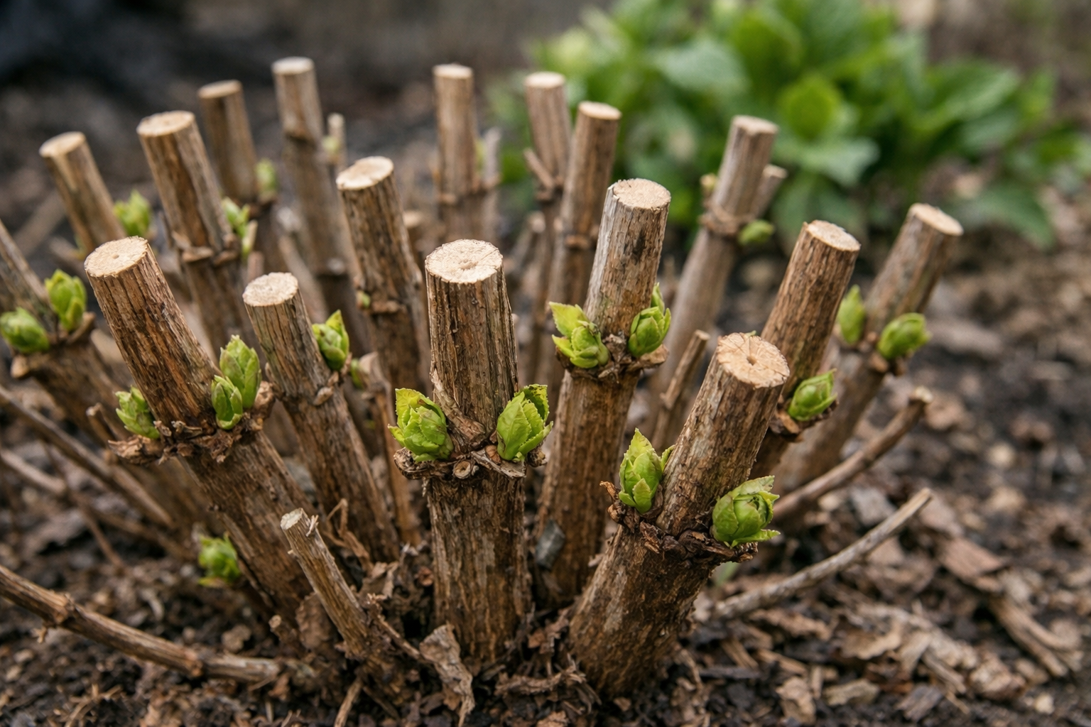 kardinolas pavasarinis genėjimas pradeda galingus regeneracijos procesus. Krūmas pabunda iš žiemos miego ir visas savo maistines medžiagas nukreipia ne į senos medienos priežiūrą, o į stiprių jaunų ūglių formavimąsi. Būtent ant šių šviežių šakų formuojasi didžiausios ir vešliausios gėlių kepurės, kurios nelūžta nuo savo svorio.