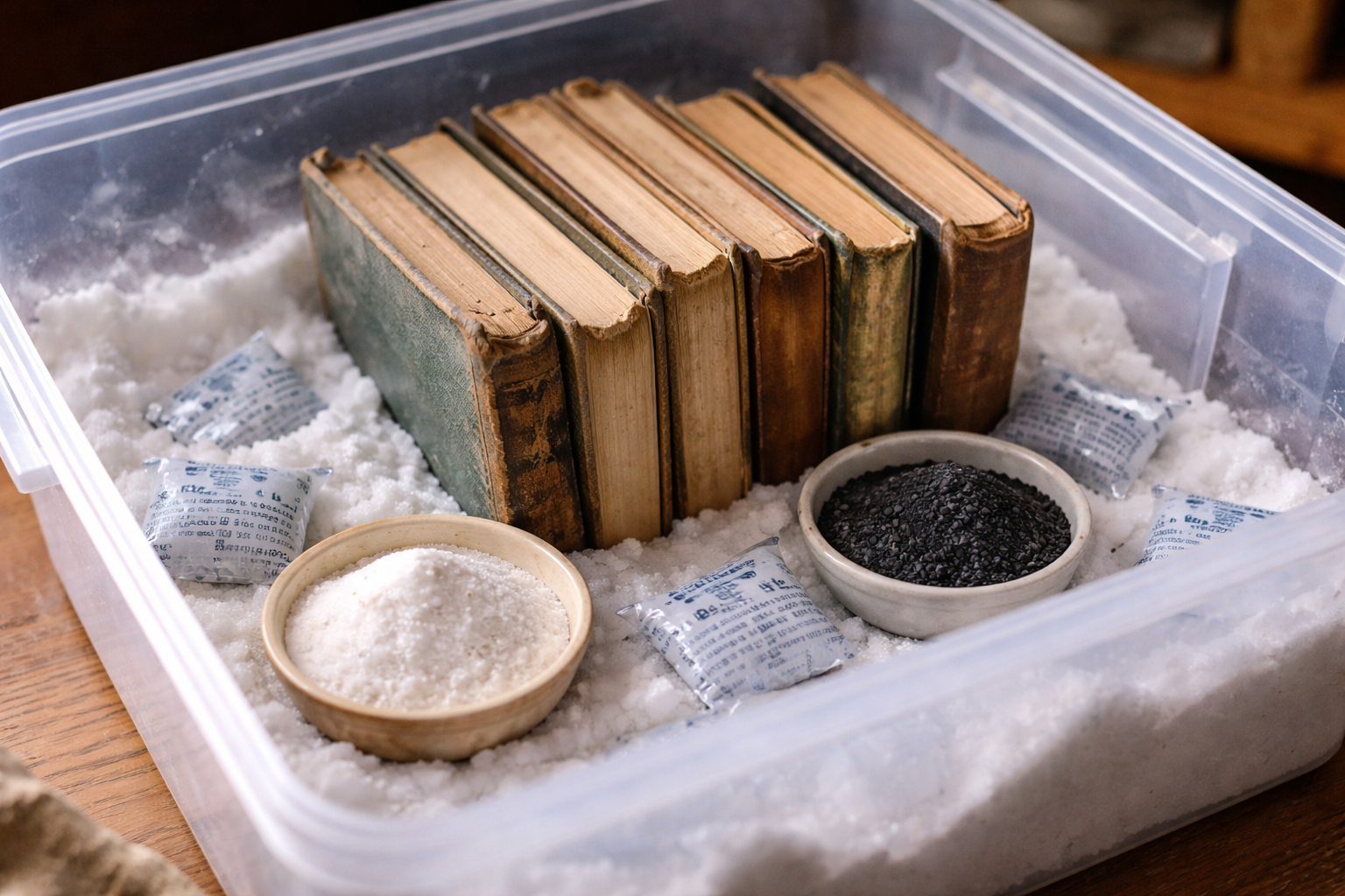 Pasiimi senovinį tomą ar mėgiamą vaikystės leidinį, atidarai viršelį ir vietoj malonumo pajunti aštrų pelėsio ir dulkių aromatą. Šią problemą žino kiekvienas naudotų knygų pardavėjas ir popierinės literatūros žinovas, tačiau garantuoju, kad puslapius pavyks išsaugoti vos per porą dienų. Pamirškite apie agresyvius oro gaiviklius ir sudėtingą chemiją, nes pasitelksime patikrintus metodus švelniai sugerti drėgmę ir atkurti tomų gaivumą.