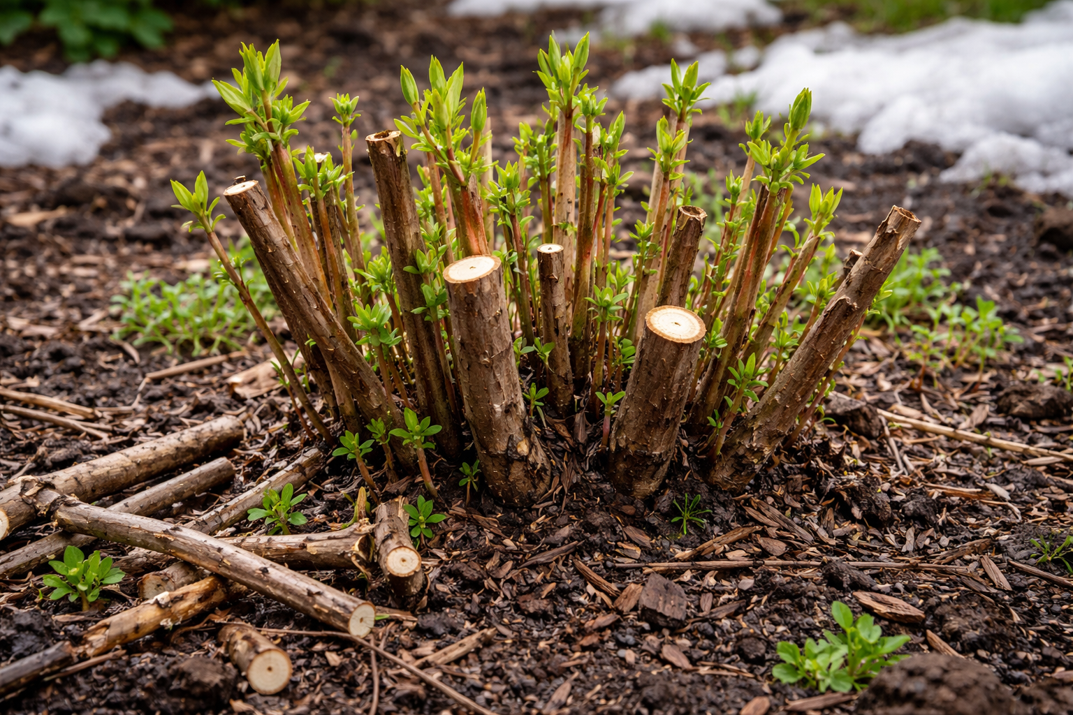 Darbai atliekami labai anksti pavasarį, kol pumpurai neišsiskleidžia, kai tik ištirpsta pagrindinis sniegas.