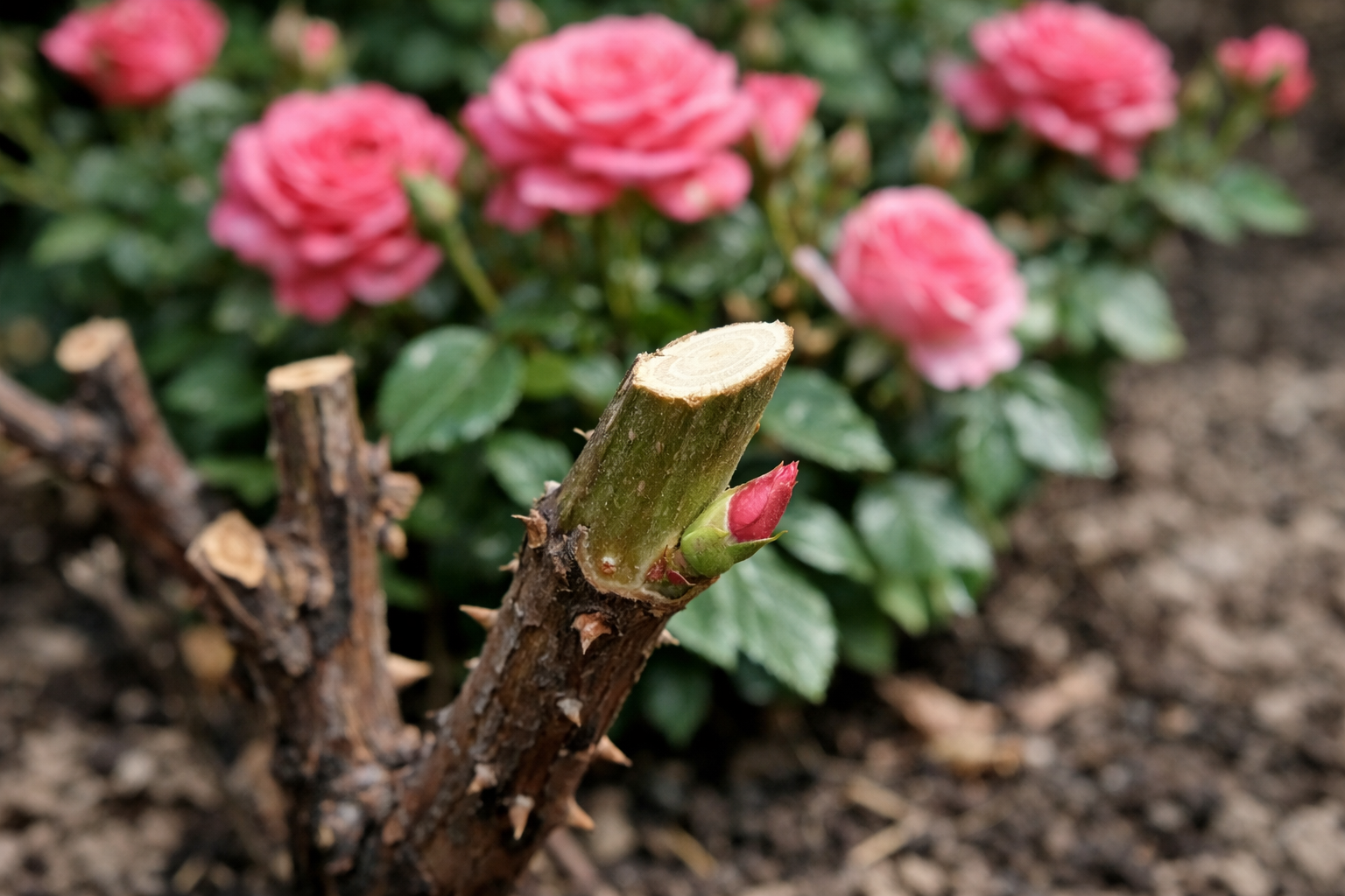 Pagrindinė paslaptis slypi pjūvio kryptimi: padarykite jį keturiasdešimt penkių laipsnių kampu, griežtai virš išorinio pumpuro, kad naujas ūglis augtų į išorę, o ne į krūmo centrą.