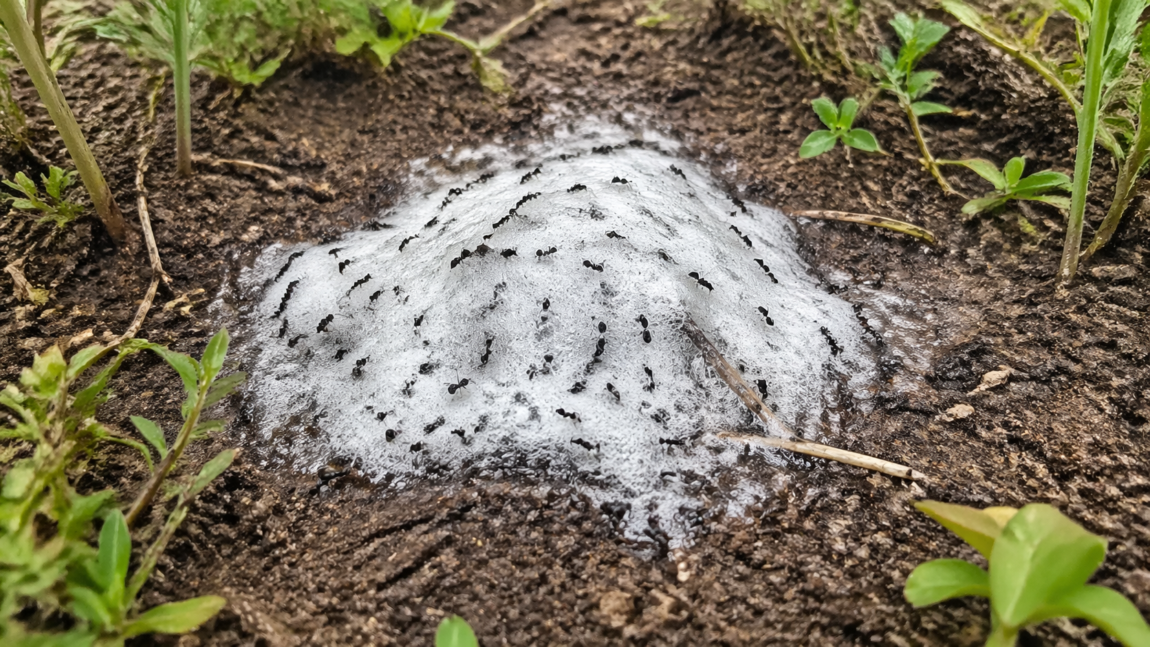 Smarki cheminė reakcija gali sunaikinti visą skruzdėlyną, kai tirpalas patenka giliai į požemines perėjas.