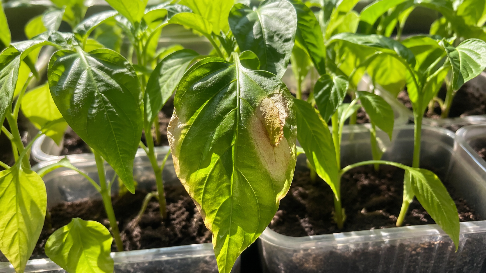 Viena dažniausių klaidų – staigus dėžių iškėlimas į atvirą saulę. Šviesos trūkumo sąlygomis auginamų augalų audiniai neturi apsauginio sluoksnio, todėl saulės nudegimas įvyksta pažodžiui per 15-20 minučių. Kad išvengtumėte sodinukų praradimo, naudokite paprastus apsaugos būdus: