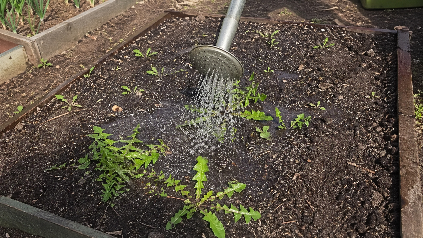 Naudojant verdantį vandenį. Tai pigiausias ir greičiausias būdas takams ir tuščioms lovoms. Tiesiog išvirus jaunus ūglius iš karto užpilkite vandeniu.