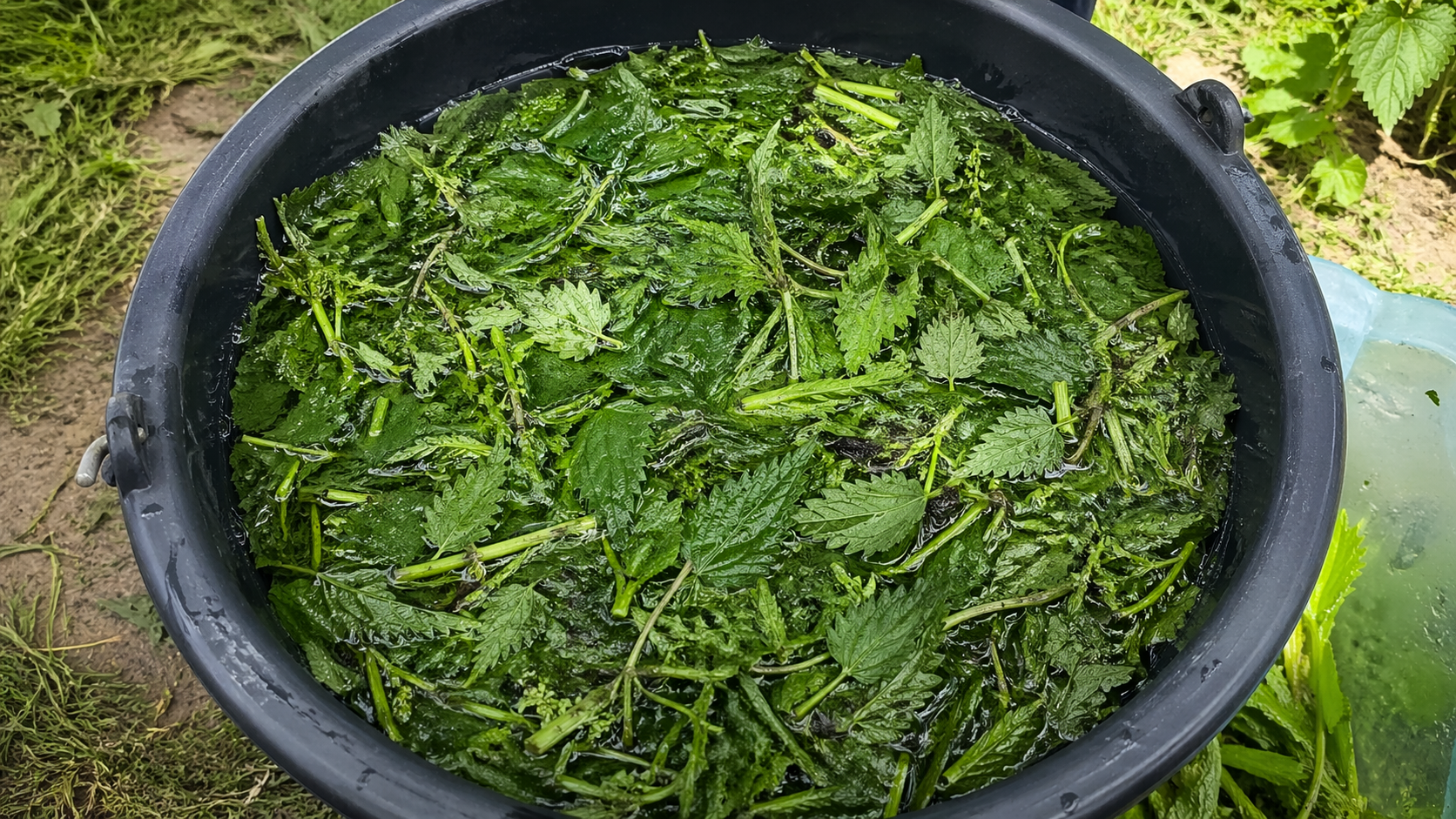 Norėdami paruošti pagrindinį tirpalą, indas užpildomas iki pusės žalumynais ir užpilamas šiltu vandeniu. Būtinai palikite vietos kraštams, nuo kada fermentacija Iškils tiršta puta. Skystis turi būti kasdien maišomas mediniu pagaliuku, kad išsiskirtų anglies dioksidas.